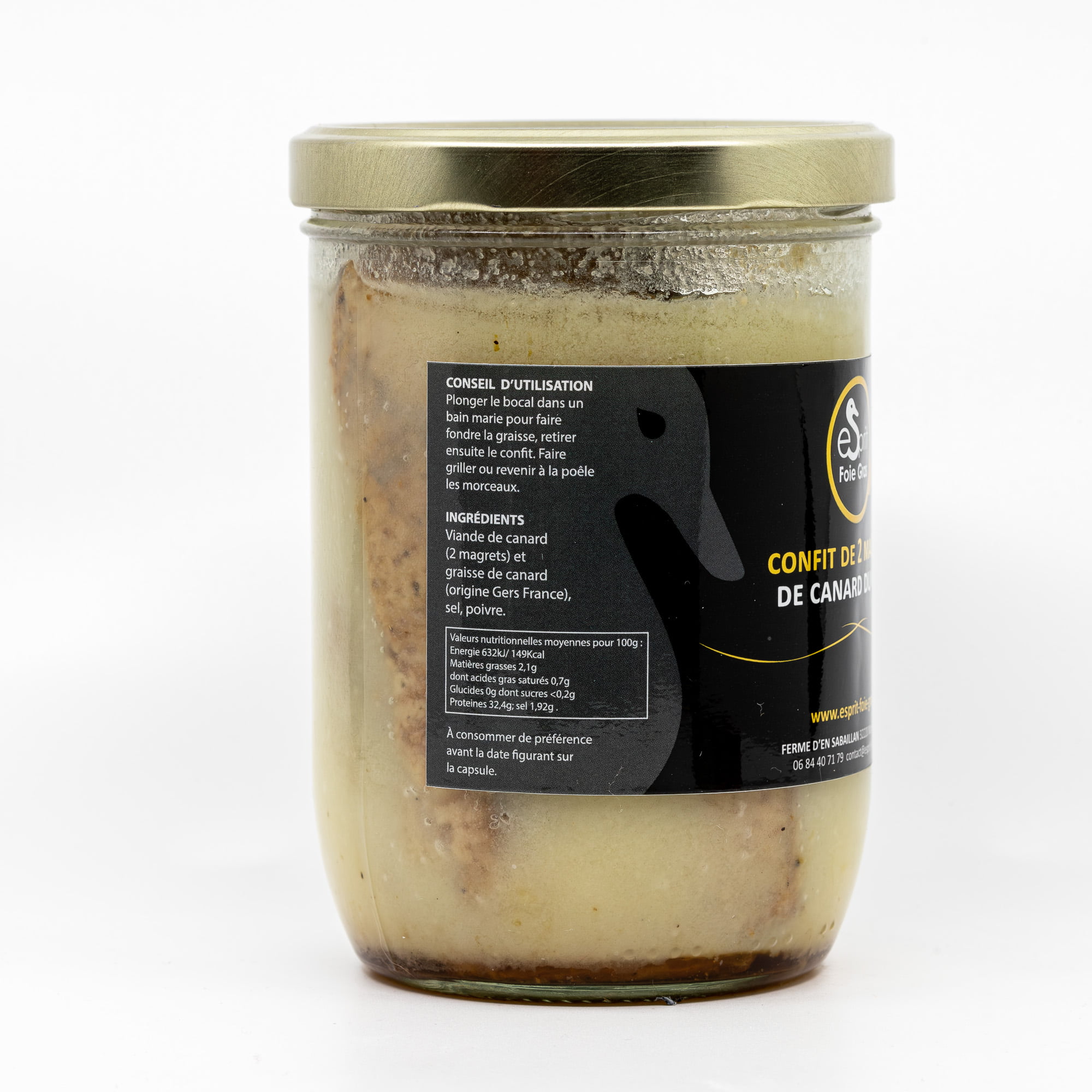 Bocal en verre de 600 g, contenant deux magrets de canard confits, pour une conservation optimale et une fraîcheur préservée